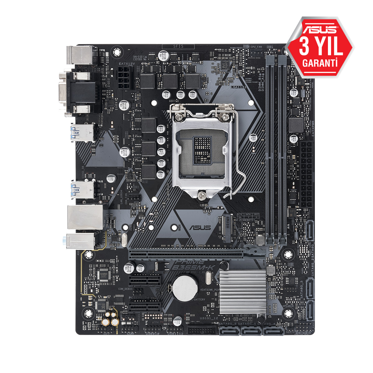 | PRIME B365M-K LED aydınlatmalı, DDR4 2666MHz, M.2 desteği, SATA 6Gbps/s, Intel LGA-1151, B365 Yonga seti, mATX anakart |