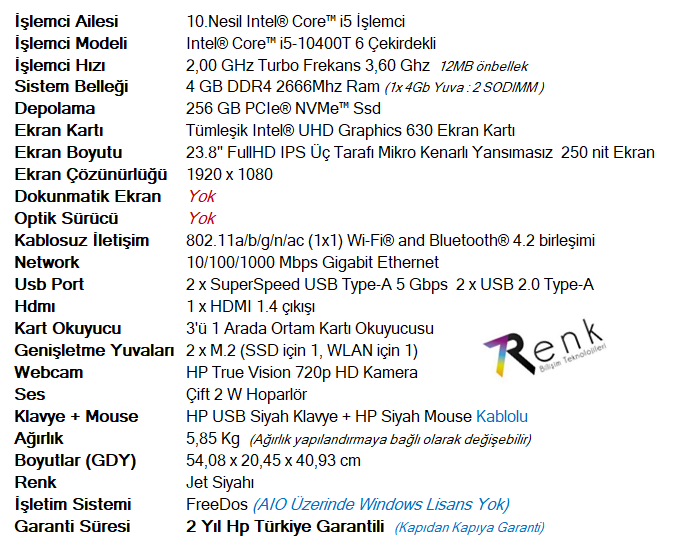 | Güvenilir işlemci performansıyla en yoğun günlerin üstesinden gelmenizi sağlayacak, güçlü bir All-in-One |